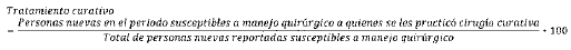 Mide la proporción de hombres con cáncer de próstata en estadios clínicos susceptibles a tratamiento quirúrgico, a quienes se les practicó cirugía curativa en el periodo.