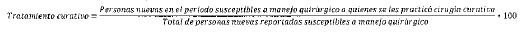 - Denominador: Total de hombres reportados como nuevos en el periodo en estadios susceptibles a curación con tratamiento quirúrgico.