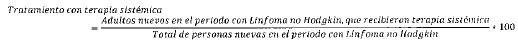 Mide la proporción de adultos reportados como nuevos en el periodo con Linfoma no Hodgkin, que recibieron terapia sistémica.