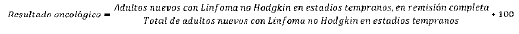 - Numerador: Número de adultos reportados como nuevos en el periodo con Linfoma no Hodgkin en estadios tempranos, cuyo manejo termina en remisión completa.