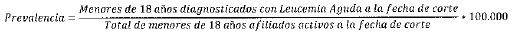 - Numerador: Número de personas menores a 18 años diagnosticadas con Leucemia Aguda, que se encuentran afiliadas activas a la fecha de corte de la información.