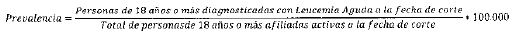 Identifica la tasa de personas de 18 años o más con diagnóstico de leucemia aguda, afiliadas activas a la fecha de corte de la información.
