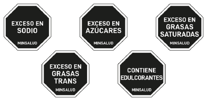 No se puede utilizar otro formato de etiquetado frontal, ni tipo de forma de sello de advertencia, ni cambiar el texto, tipo de letra, diagrama o dibujo, en ningún producto, independiente si lleva o no, etiquetado frontal de advertencia. De igual forma, no se puede utilizar la forma del etiquetado frontal de advertencia para incluir sellos con un texto diferente que haga alusión a otros nutrientes o cualquier componente de los productos envasados diferente a los que son objeto de esta regulación (sal/sodio, azúcares, grasas, edulcorantes)