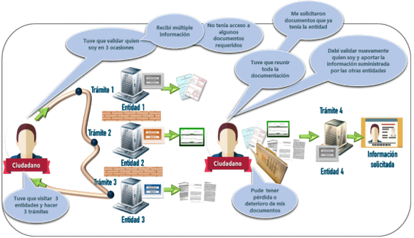 Por ejemplo, en el proyecto de Interoperabilidad de la Historia Clínica Electrónica (IHCE) (Ley 2015 de 2020(4) se requiere el intercambio de información de la historia clínica de Instituciones Prestadoras de Servicios de Salud (IPS) Públicas y Privadas; en el proyecto de diseño de automatización del trámite de cargue y validación de contratos en el Sistema Electrónico para la Contratación Pública (SECOP), la Agencia Nacional de Contratación Pública -Colombia Compra Eficiente- y la Superintendencia Financiera de Colombia, manifestaron la necesidad de que sean las empresas aseguradoras quienes proporcionen la información sobre las pólizas de seguro de los contratos.