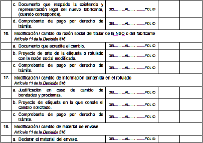 Que la misma Decisión señala que los interesados deberán informar debida e inmediatamente a la Autoridad Nacional Competente los cambios a la Notificación Sanitaria Obligatoria, adjuntando la documentación respectiva;